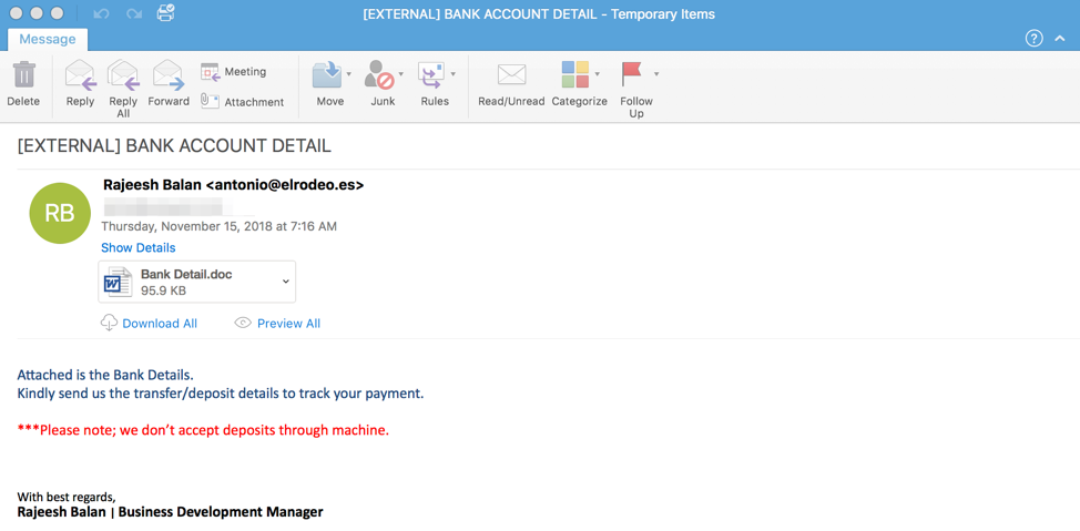 A first salvo of malicious messages was shot on November 9, 2018. It was a small campaign with several thousand emails delivering Word and Publisher documents laced with hostile macros.