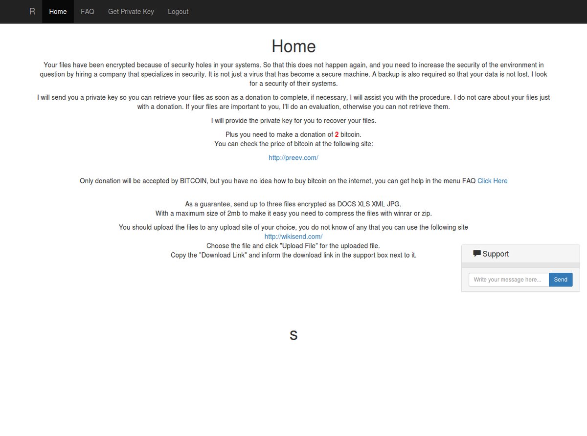 This past Saturday security researchers Kafeine, MalwareHunterteam, BroadAnalysis, and David Martínez discovered a new ransomware being distributed through EITest into the RIG exploit kit. As this ransomware was only distributed for one day and does not securely encrypt files, it makes me believe that this may have been a test distribution run.