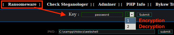 Ensiko encrypts files in a web shell directory and subdirectories and appends the .BAK extension to processed files.