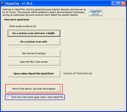 HijackThis Startbildschirm bei Erststart