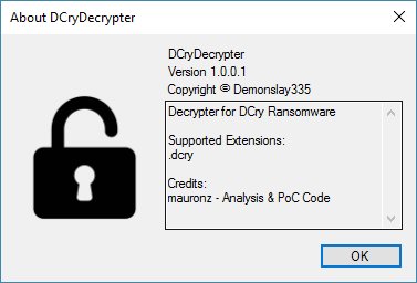 DCryDecrypter is a ransomware decryptor created by Michael Gillespie that decrypts files encrypted by the DCry Ransomware. Using this decryptor, victims can recover their files for free without having to pay a ransom.