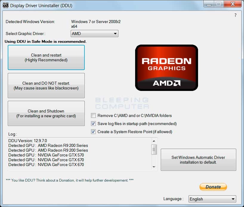 The AMD/NVIDIA video drivers can normally be uninstalled from the Windows Control panel, this driver uninstaller program was designed to be used in cases where the standard driver uninstall fails, or whenever you need to thoroughly delete NVIDIA and ATI video card drivers.