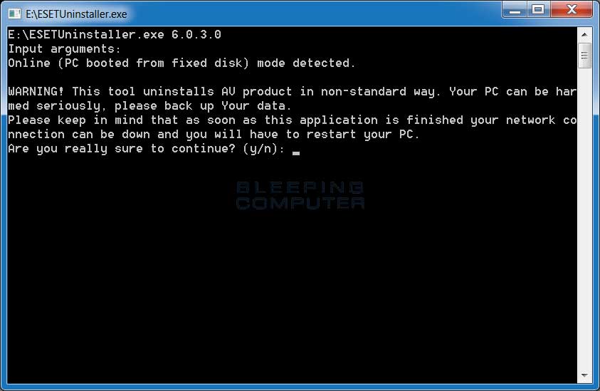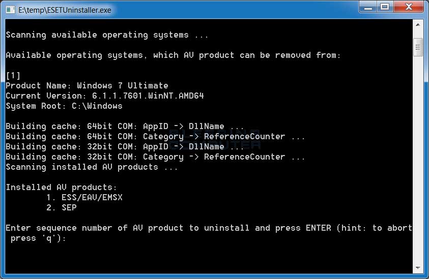 The ESET Uninstaller is a tool that allows you to remove ESET products that you are not able to uninstall through normal methods. This tool performs a manual removal of ESET products that it detects on your computer. To use the uninstaller, simply download it and then double-click on ESETUninstaller.exe. This will open a black Windows that will prompt you on how to continue.
