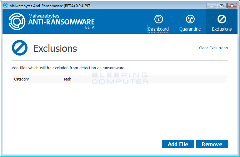 Malwarebytes Anti-Ransomware Beta is a program that protects your computer from file encrypting ransomware programs. This programs quietly sits in the background while analyzing the behaviour of the process threads on the computer. When it notices that a thread is trying to encrypt data on your computer, it will automatically terminate the thread.