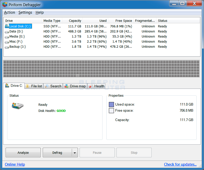Defraggler is a free hard disk defragmentation utility that allows you to defrag your entire hard drive or just individual files. Defraggler supports NTFS and FAT32 file systems. A unique ability of Defraggler is to be able to defrag a specific file rather than an entire hard drive. This allows you to increase the performance of opening a particular file if it is large and severely fragmented.