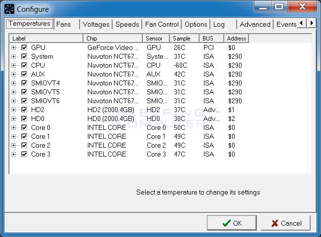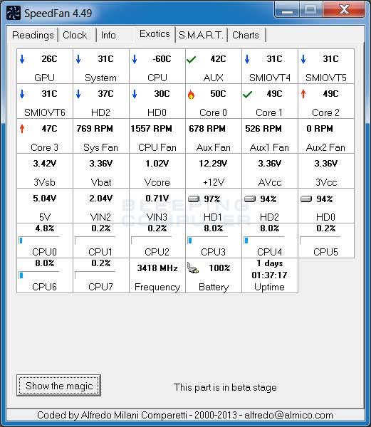 SpeedFan allows you to the monitor the temperature and fan speeds of various components of your computer. This allows you to fine-tune the temperature of your components by creating custom settings that increase the fan speed when a particular temperature is reached.