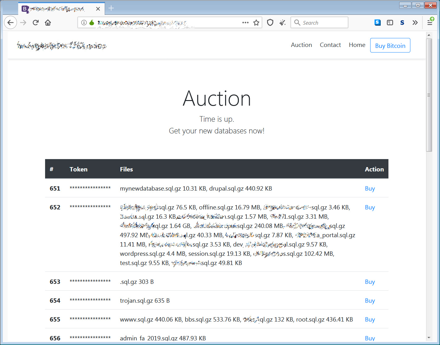 The MySQL databases sold on the auction site range from 20 bytes to gigabytes in size, and are offered for the same amount - 0.03 bitcoins or $545 at current prices.