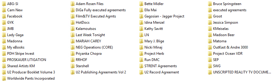 To prove beyond dispute that they have the information they claim, Sodin also provides snippets from a legal agreement in 2013 signed by Christina Aguilera and an artist featured in one of her music projects. Aguilera’s name is not present on the list of clients, indicating that she no longer retains the firm’s services.
