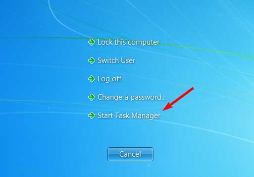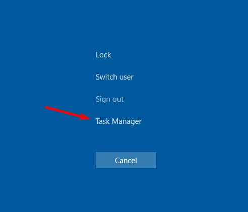At the above screen, click on the Task Manager option to start the Windows Task Manager.